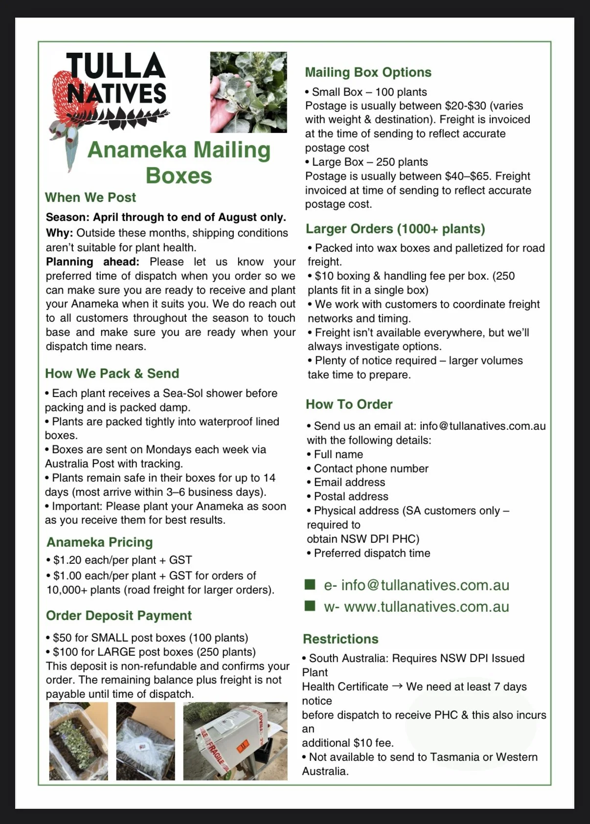 Please contact us to discuss or confirm your Anameka™ order for this year’s planting. Each season we sell out fast due to increasing demand so get your order in ASAP to avoid missing out.